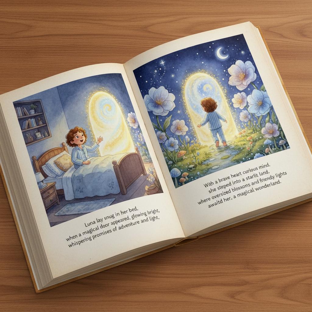 Convert your own written script into an illustrated storybook with accurate scene-by-scene visualisation. Already have a story written? We'll transform it into a professionally illustrated children's book.